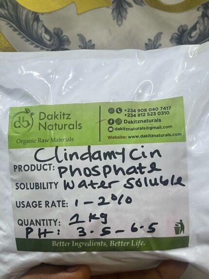 Clindamycin phosphate is a water-soluble, semi-synthetic antibiotic derived from lincomycin. In powder form, commonly used in skincare and pharmaceuticals to