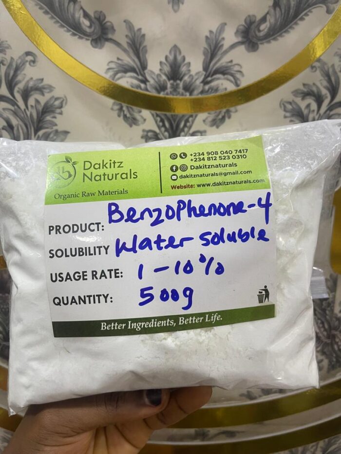 Benzophenone-4 (Sulisobenzone) is an excellent choice for water-based products requiring transparent UV protection for skin, hair, and formulations. It’s especially useful where traditional oil-soluble sunscreens are not feasible.